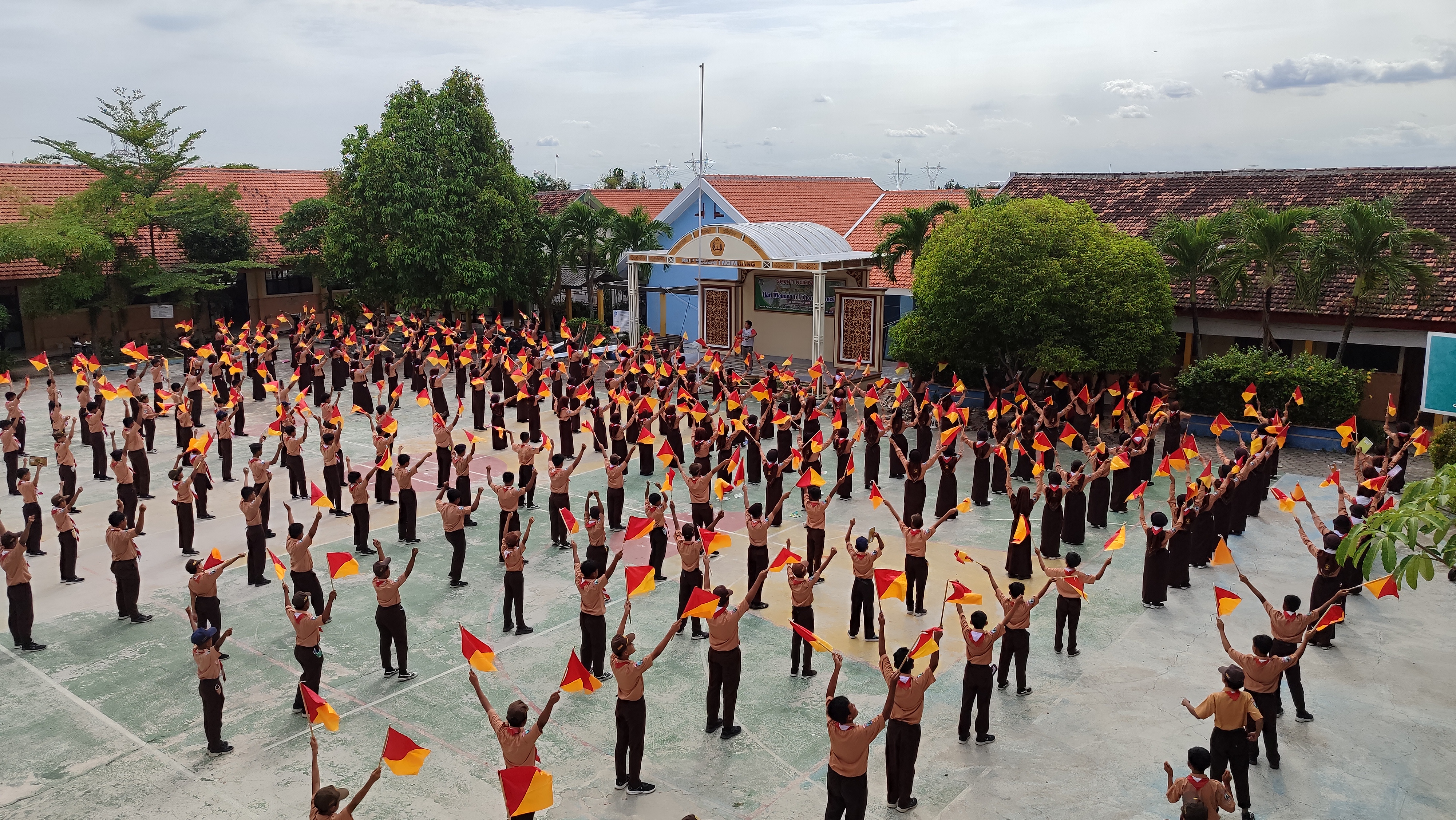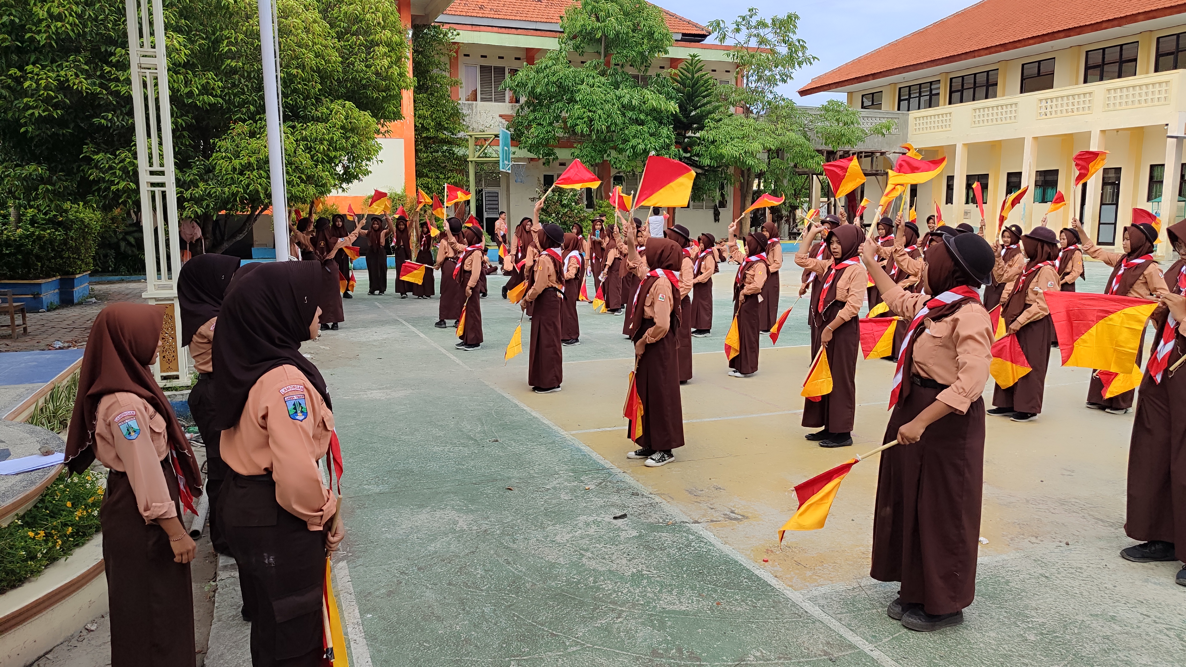 Ngimbang, 29 November 2025 — Kegiatan Ekstrakurikuler Pramuka SMPN 1 Ngimbang kembali digelar pada Sabtu (29/11) dengan menghadirkan materi semaphore bagi peserta didik kelas 7. Pelatihan berlangsung di halaman sekolah dan dipandu oleh pembina Pramuka, Nugroho Hadi Utomo, S.Pd, bersama Kak Rozaq selaku pembina lapangan.