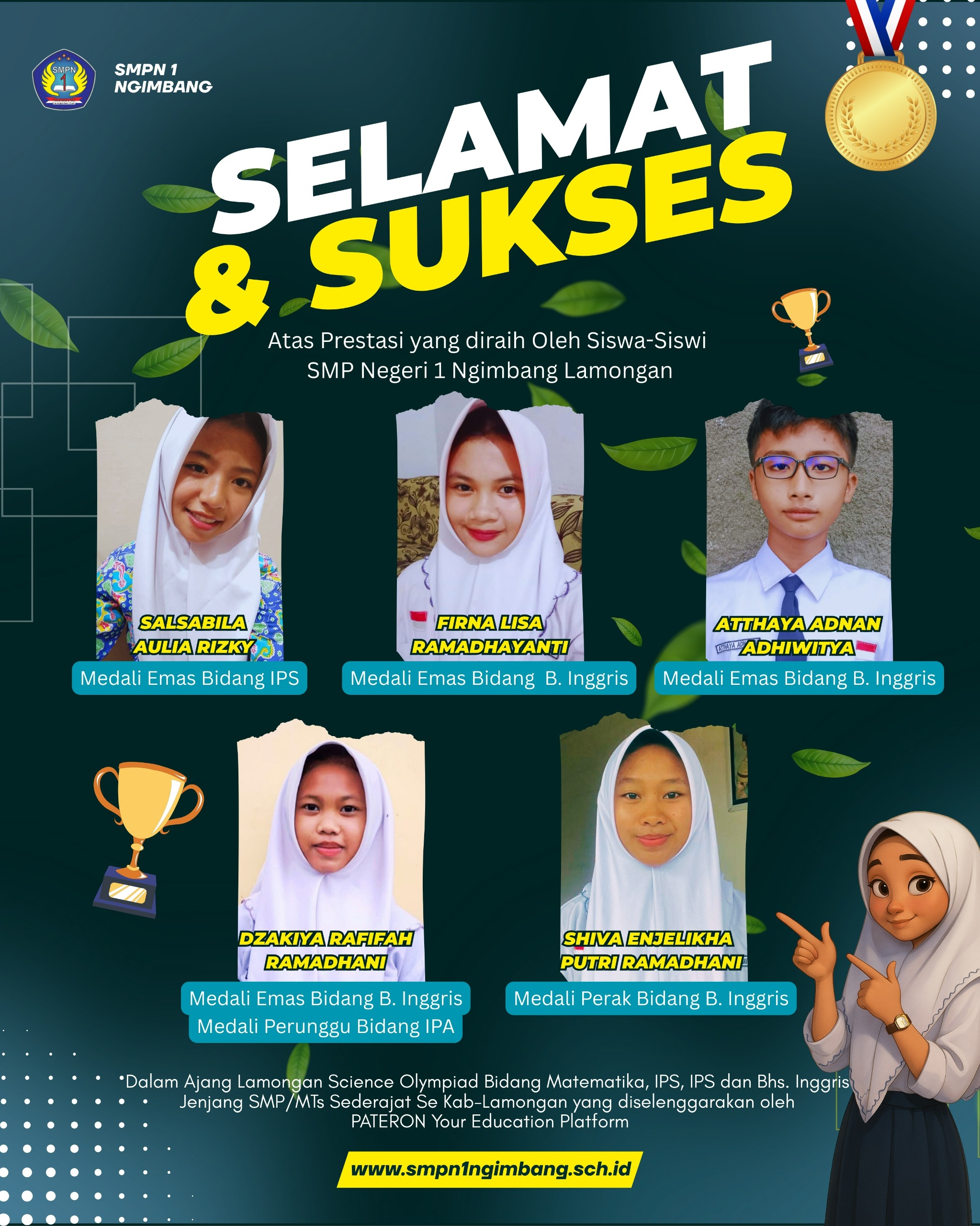 Lamongan – Siswa-siswi SMPN 1 Ngimbang kembali menorehkan prestasi akademik dalam ajang Lamongan Science Olympiad tingkat SMP/MTs se-Kabupaten Lamongan yang diselenggarakan oleh PATERON Your Education Platform.